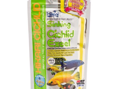 Hikari Sinking Cichlid Excel pellets are specially formulated for herbivorous (plant eating) fish. Sinking Cichlid Excel is a superior diet that can be fed to African Cichlids and many types of plant eating tropical fish with excellent results!