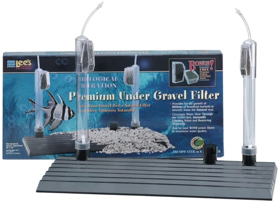 Lees Premium Under Gravel Filters clean your freshwater or saltwater aquarium through a biological filtering process that supports the growth of beneficial bacteria. This allows natural detoxification and maintains proper ammonia balance by circulating water flow through the gravel bed.