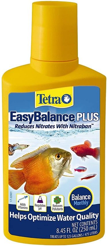 Tetra EasyBalance Plus provides an invaluable safety net for the time challenged hobbyist. It maintains healthy levels of essential aquarium chemistry, including regulating pH and alkalinity and reducing nitrates and phosphates. It further supports fish health by replenishing vital vitamins, minerals and electrolytes.