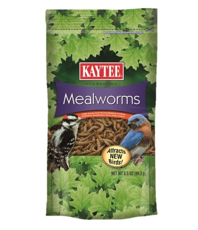 Kaytee Mealworms Bird Food is a high-energy treat that attracts new birds you wouldn’t otherwise, like bluebirds, cardinals, chickadees, woodpeckers, wrens, robins and more. This wild bird food is an excellent high-protein food source that can be used alone in a feeder or mixed with your favorite wild bird seed.