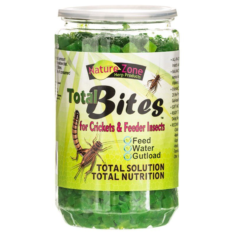 Nature Zone Total Bites for Crickets and Feeder Insects is a complete diet for feeder and pet insects alike. Moist and ready-to-eat, this revolutionary food is filled with nutritious ingredients to provide the food, water and gutload needs of your crickets, worms, roaches, spiders and more.