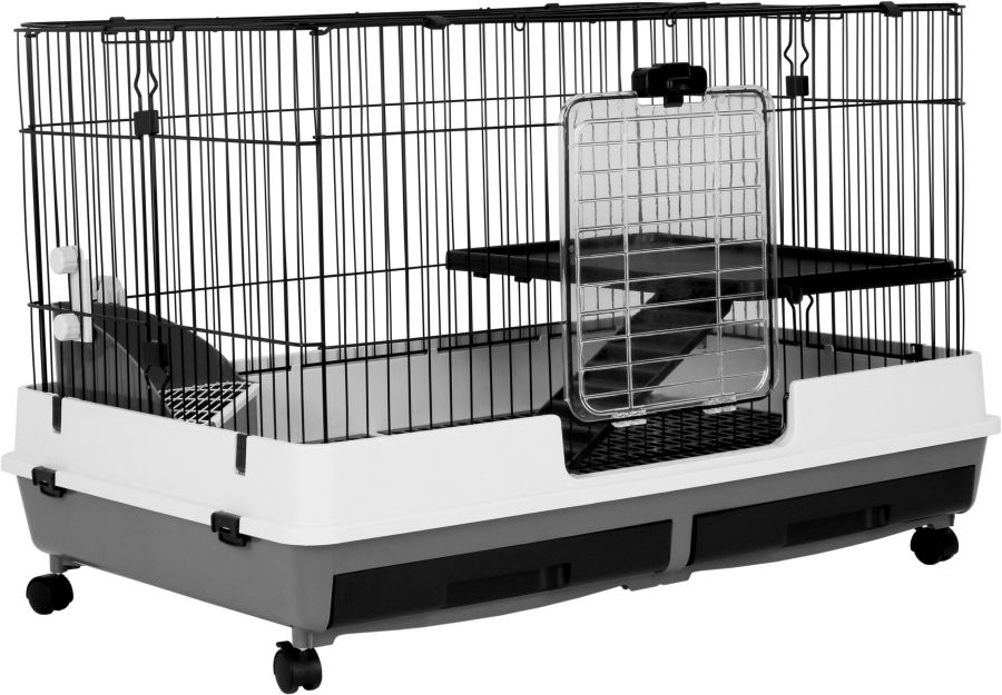 Keep your furry friend comfortable with the A&E Cage Company Extra-Large Deluxe Two Level Small Animal Cage! The drop-down door ramp makes it extra easy for your pet to enter and exit the cage whenever you please and the 4 Easy-Glide casters mean you can move your cage from room to room effortlessly. Plus, you can have peace of mind knowing that this cage has a safe powder-coated finish.