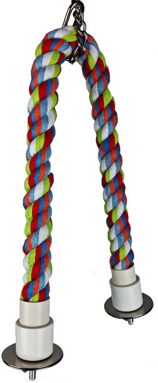 A&E Cage Company Great Companions Comfy Cable Perch Small 36″ Long is a great perch choice for your favorite bird. Cotton is comfortable to your birds sensitive feet. It is a great source of exercise for your birds feet as their grip can vary atop the soft rope. You can place the rope to be sturdy like a regular perch or loose for a fun swinging perch!!