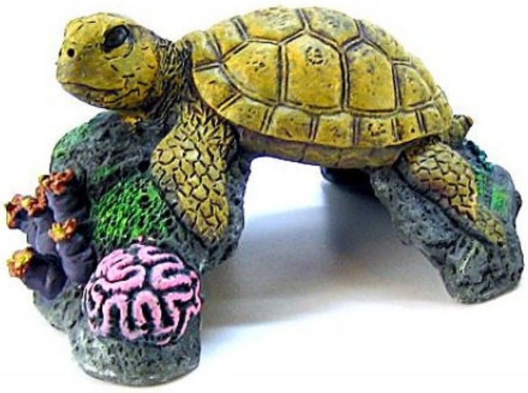 The adorable Blue Ribbon Exotic Environments Sea Turtle Ornament basks on a rock ledge which features large swim-through chambers that fish love to explore. Adorable turtle is ideal for aquariums and terrariums. Safe for all aquariums.
