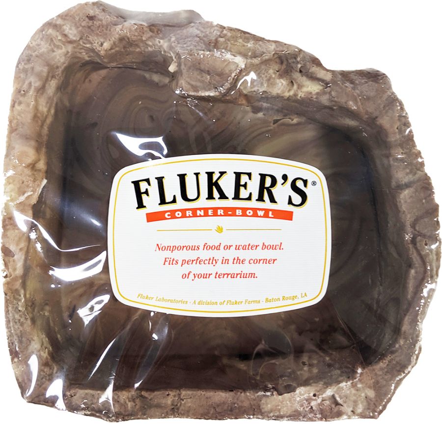 Flukers Reptile Corner Bowl provides a space-saving feeding area for any reptile, amphibian, or invertebrate. Designed to fit flush against the corners of your terrarium and blend in with the scenery, this bowl may be used for food or water.