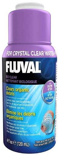 Fluval Bio Clear uses a fast-acting bio-enzyme formula to naturally clear cloudy water. It effectively consumes the free floating organic debris, food, and proteins that can cloud water in aquariums with heavy organic loads.