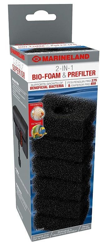 Marineland 2 in 1 Bio Foam Prefilter screens out dirt and debris while supporting the growth of beneficial bacteria. Crystal-clear water is the mark of a healthy, thriving aquarium, this filter foam will boost mechanical and biological filtration for premium water clarity. Easy maintenance, just rinse monthly or as needed.