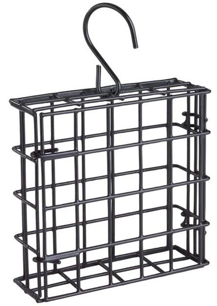The More Birds Suet Cage Single is the perfect way to offer healthy treats to Woodpeckers, Nuthatches, Chickadees, and more! The cage holds 1 suet cake and features an easy-open, double-locking closure system to secure tightly. Its cage grid is designed with clinging birds in mind, but its not just for suet! Its also perfect for small seed cakes, nesting materials in spring & oranges in summer. Constructed of solid steel with a weather-resistant, powder-coated finish in black, the Suet Cage Single is a quality suet feeder that the birds will love.