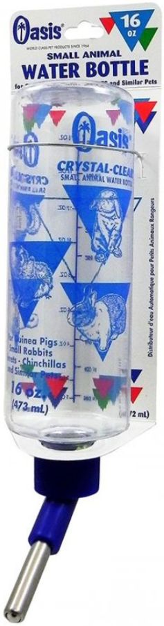 Oasis Small Animal Crystal Clear Water Bottles are the bottle of choice when clarity is desired and when the cage is kept indoors where exposure to direct sunlight is reduced, minimizing the damaging effects of ultra-violet light on the bottle.