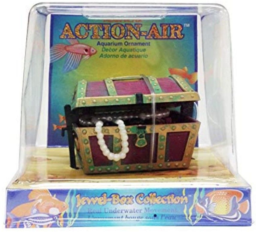 Penn Plax Action-Air Treasure Chest adds real underwater movement to your tank. When connected to an air pump (not included) the chest opens and closes. Item comes in assorted colors.