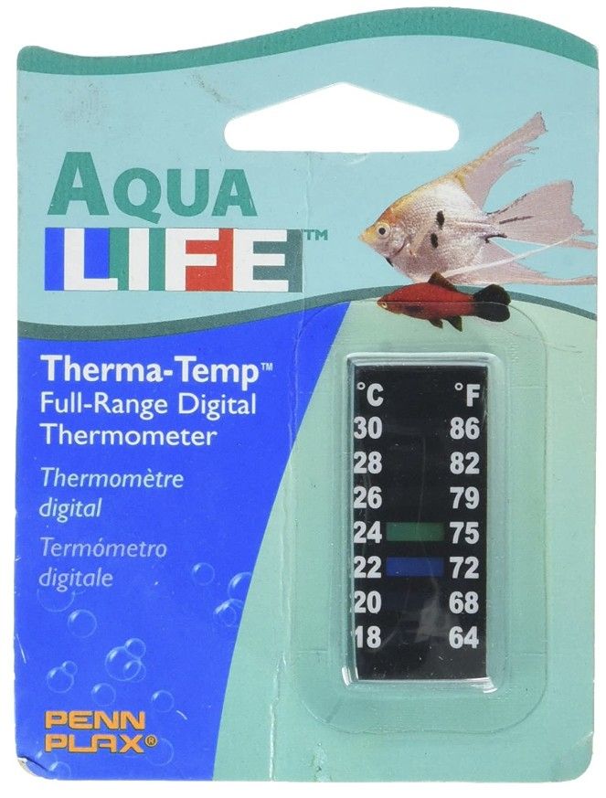 Most tropical fish have specific temperature requirements in order to thrive. The Penn-Plax AquaLIFE Therma-Temp Digital Aquarium Thermometer makes it easy to know exactly what temperature your aquarium is at. This thermometer mounts conveniently on the outside wall of your aquarium with a pressure-sensitive backing. The numbers are clear and easy to read as the green color shows the correct temperature.