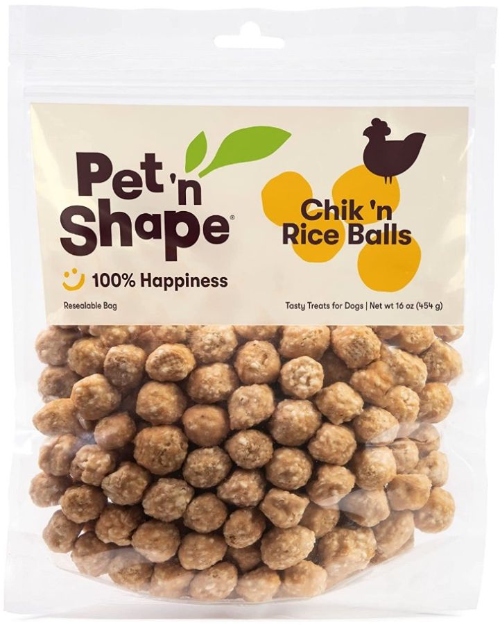 These treats are made from all white-meat, natural chicken mixed with white rice. An easy delicious crunch for dogs of all sizes. Pet ‘n Shape natural chicken treats are made from 100% natural chicken fillets.
