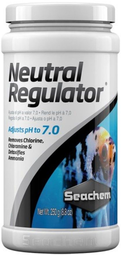 Seachem Neutral Regulator adjusts pH to neutral (pH 7.0) from either a low or high pH and maintains it there. It softens water by precipitating calcium and magnesium while removing any chlorine, chloramine, or ammonia.