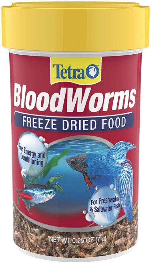 Tetra Freeze Dried Bloodworms are for freshwater aquarium fish, and provide an easy way to provide variety to a staple or flake diet. These freeze-dried bloodworms are an ideal reward for small to medium tropicals and marines, especially Bettas and Fancy Guppies.