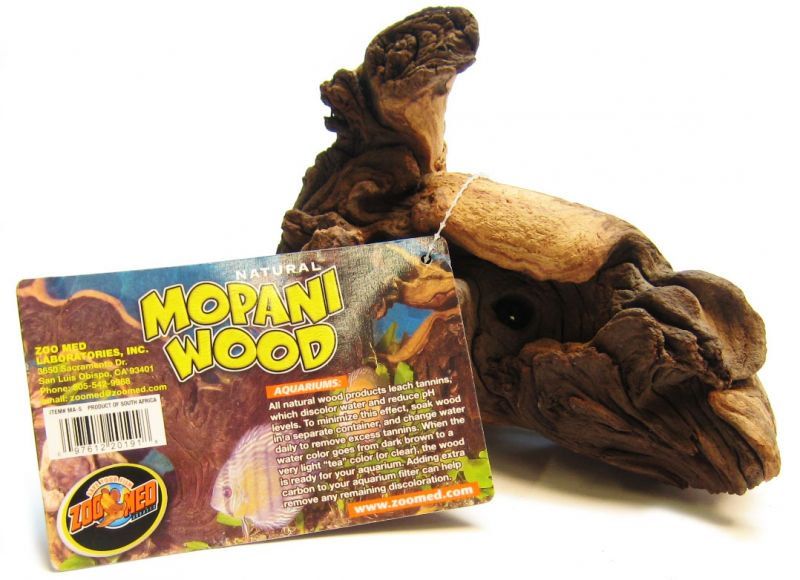 Zoo Med Aquatic Natural Mopani hardwood can be used in aquarium s or terrariums for natural decoration. Deep, chocolate brown and light, sandy yellow colors and striking shapes and textures are sure to be a focal point in any habitat.