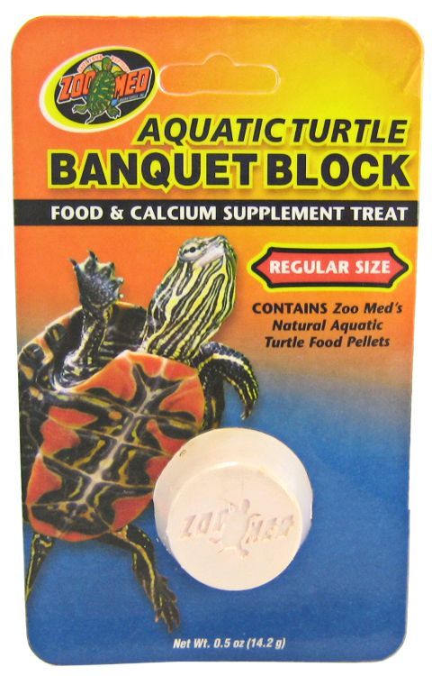 Zoo Med Aquatic Turtle Banquet Blocks are the perfect food source for your aquatic turtles while you are away on a business trip or vacation! Each feeding block is made in the USA.
